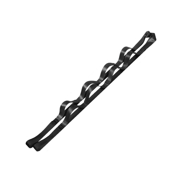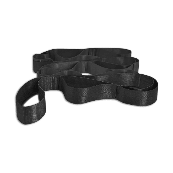 I modsætning til et yogabælte med spænde, har dette 12 øjer, som gør det muligt at skifte mellem forskellige sværhedsgrader og øvelser hurtigt.